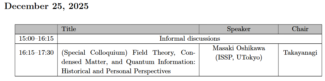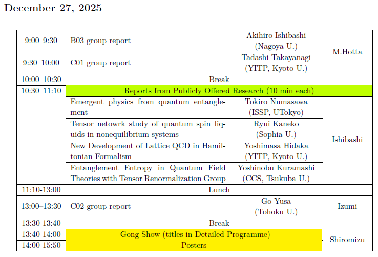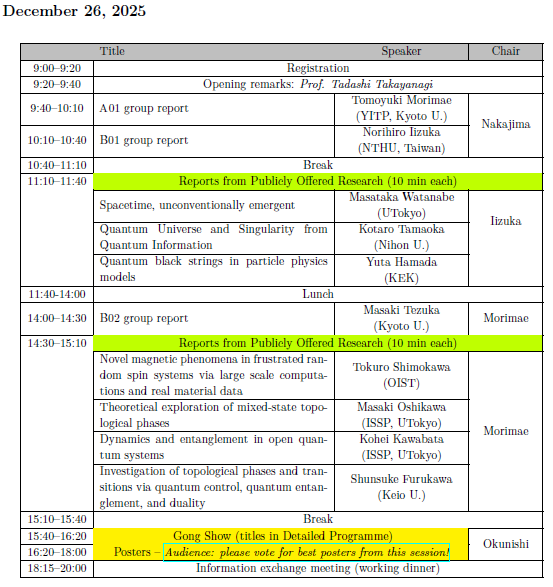 - Tadashi Takayanagi (YITP, Kyoto University, Chair)