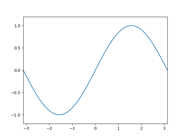 import numpy as np import matplotlib.pyplot as plt x = np.arange(-5, 5, 0.1) y1 = np.sin(x) y2 = np.cos(x) plt.xlim(-np.pi, np.pi) # x軸は-πからπまで plt.ylim(-1.2, 1.2) # y軸は-1.2から1.2まで plt.show()