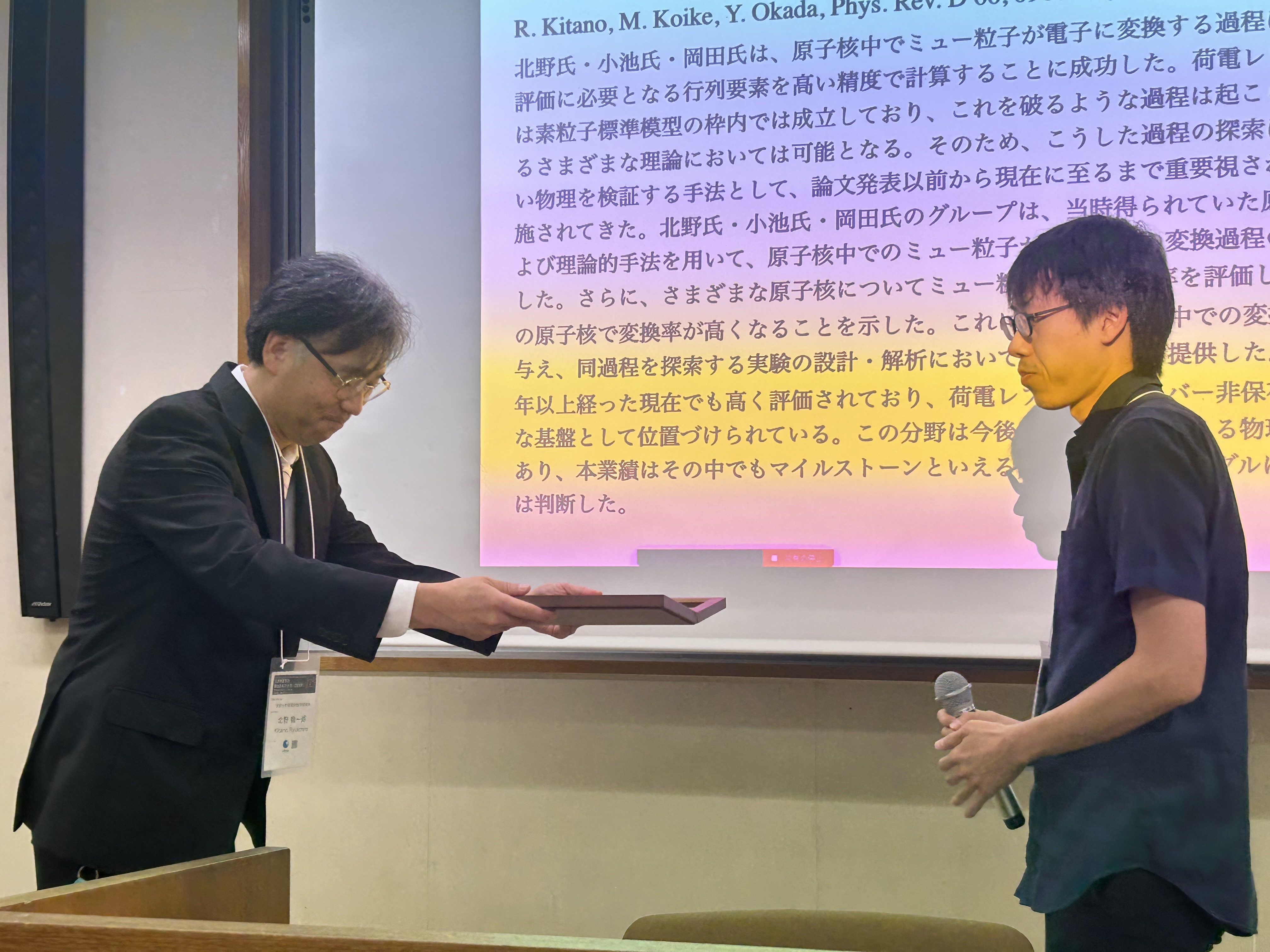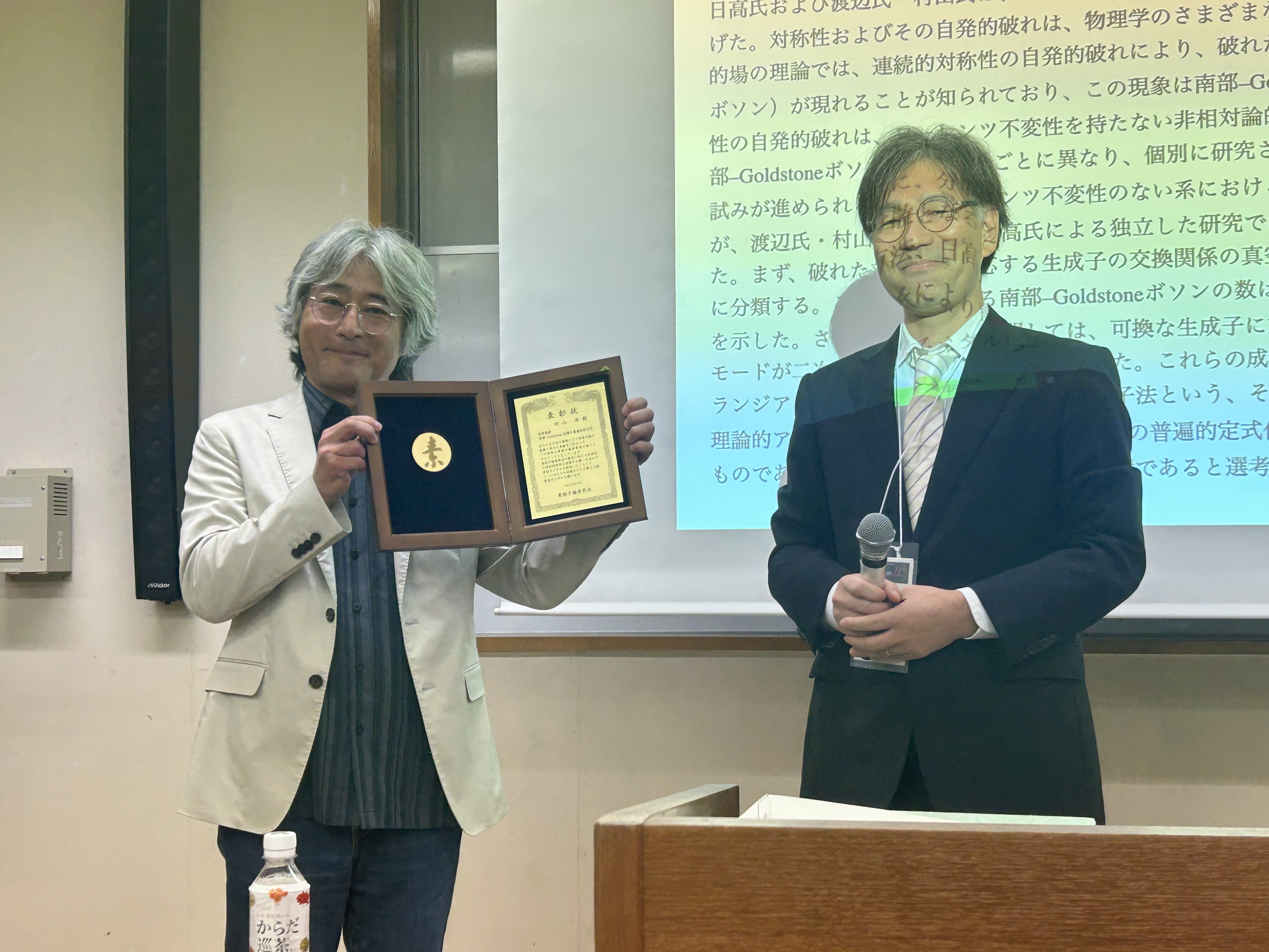 2025年9月18日に開催された日本物理学会秋季大会における素粒子論懇談会にて、 第25回「素粒子メダル」の授賞式が行われました。